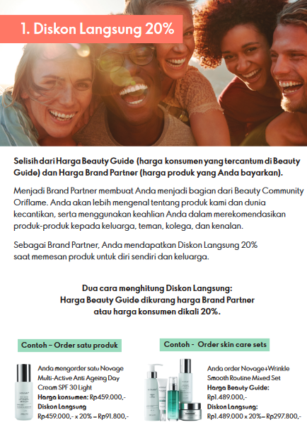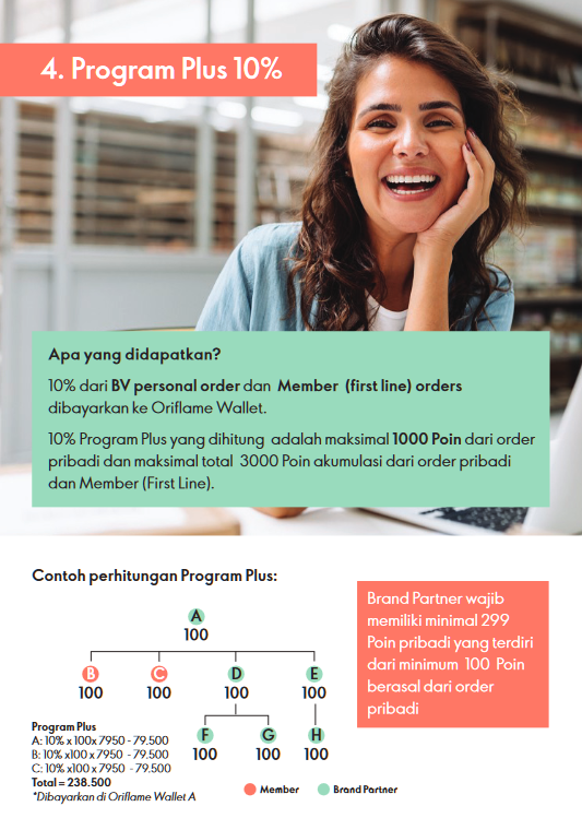 Sebagai Customer, kamu yang suka dan rutin membeli produk Oriflame, akan mendapatkan keuntungan cash back 15%, dan peluang mendaparkan referral bonus 10% dari pembelian teman yang kamu ajak join jadi member.