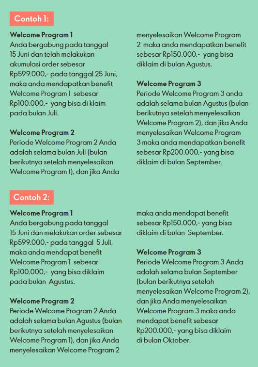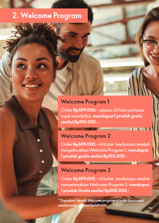 - Produk gratis hingga Rp.450.000,- sebagai Welcome Program member baru dengan syarat belanja Rp.529.000,-
